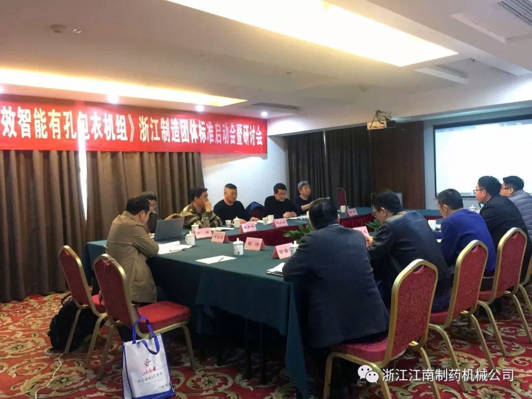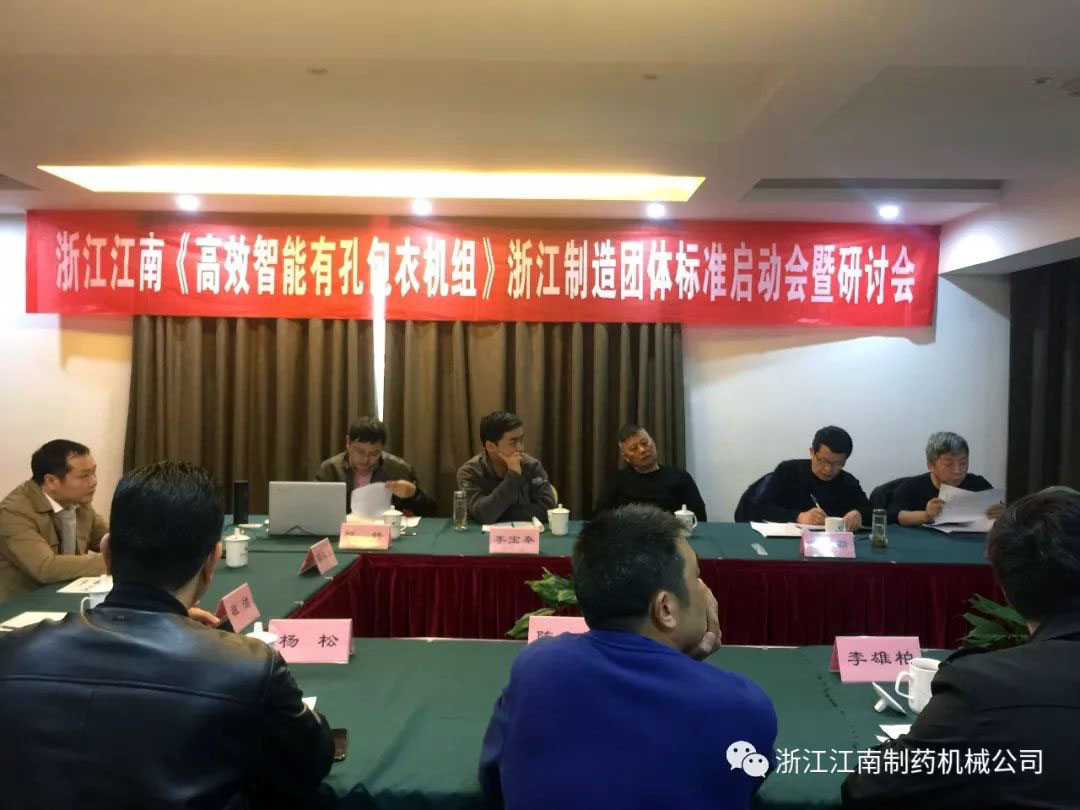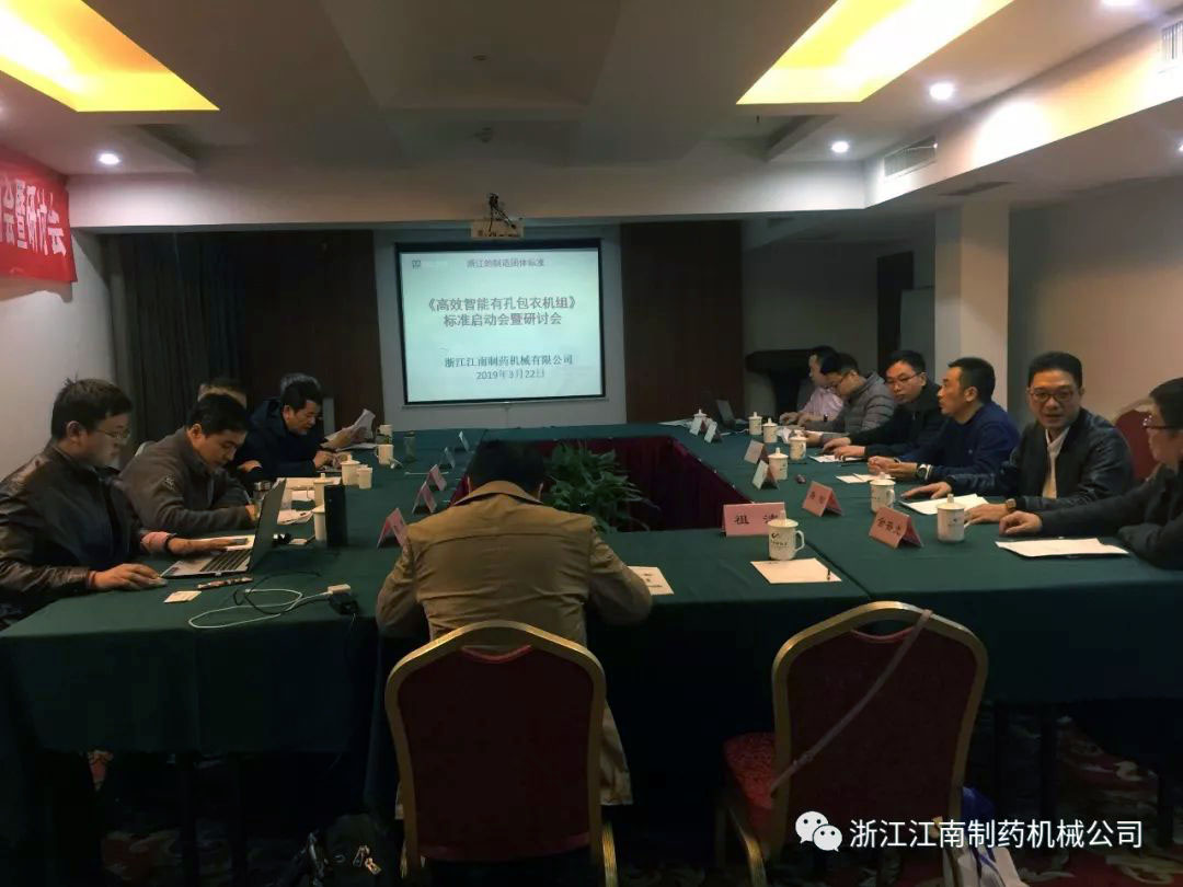 爱游戏《高效智能滚筒式有孔包衣机组》浙江制造团体标准启动会暨研讨会3月22日(星期五)下午13:30在瑞安华侨饭店召开,为了确保“浙江制造”标准的严谨,会议邀请了全国制药机械标准化技术委员会主任高工李宝秦、华东集团华润制药有限公司高工沈正良、温州市工业设计院教授级高工金建新、温州职业技术学院博士张洁、温州市标准化研究院高级工程师祖洁、瑞安市市场监督管理局高级工程师吴国华、浙江方圆检测集团高级工程师陈锋、瑞安机械行业协会秘书长金普光及我公司董事长杨松、工程师李雄柏、张富等多位专业工程师。工作组专家及成员针对标准草案进行细致而严格的研讨,探讨确定了标准的主要内容及框架,一致肯定了爱游戏《高效智能滚筒式有孔包衣机组》浙江制造标准的先进性、准确性。