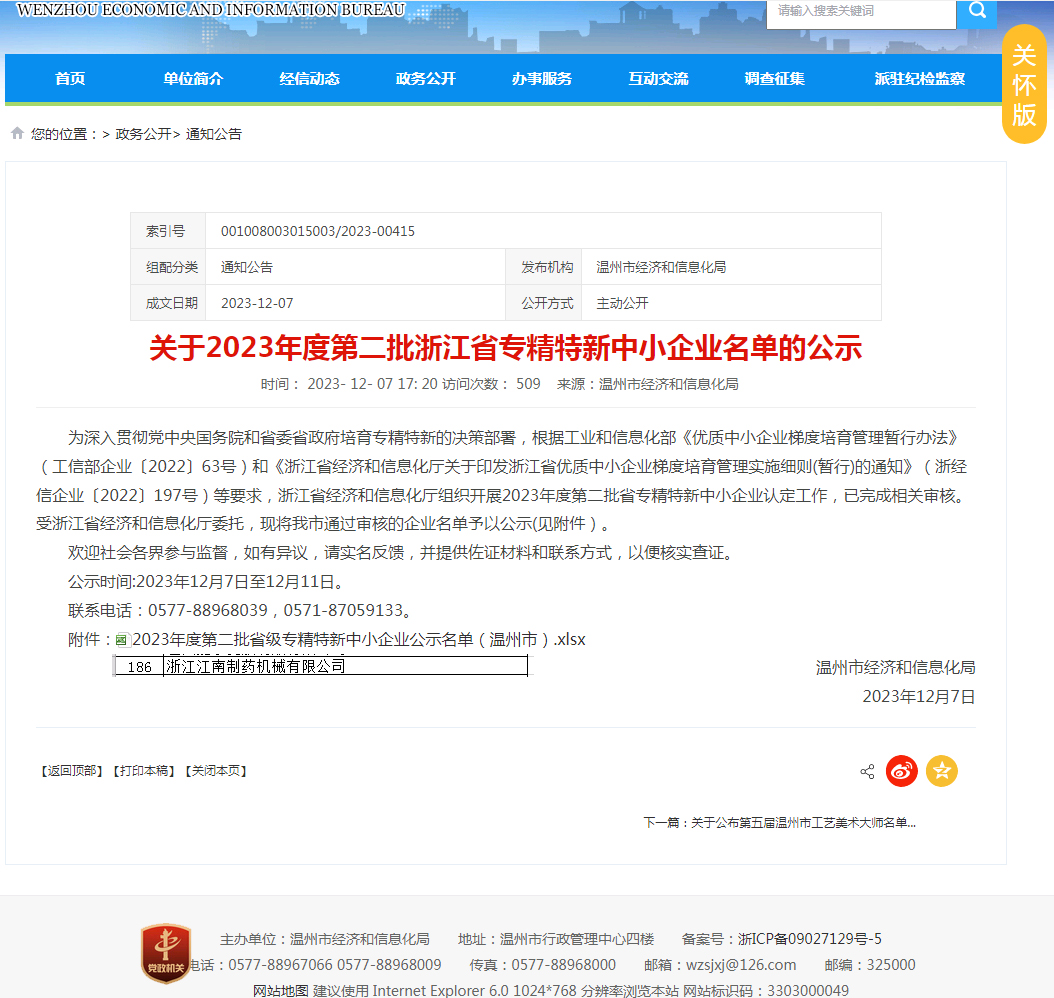 近期,根据工业和信息化部《优质中小企业梯度培育管理暂行办法》(工信部企业〔2022〕63号)和《浙江省经济和信息化厅关于印发浙江省优质中小企业梯度培育管理实施细则(暂行)的通知》(浙经信企业〔2022〕197号)等要求,浙江省经济和信息化厅组织开展2023年度第二批省专精特新中小企业认定工作,爱游戏被认定为“浙江省专精特新中小企业”。