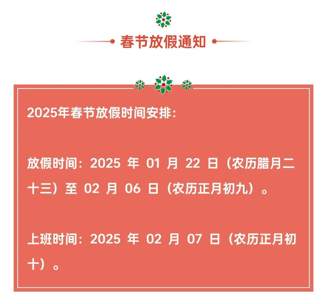 金蛇贺岁,宏图大展!浙江中国一站式体育服务官网公司2025年春节放假通知