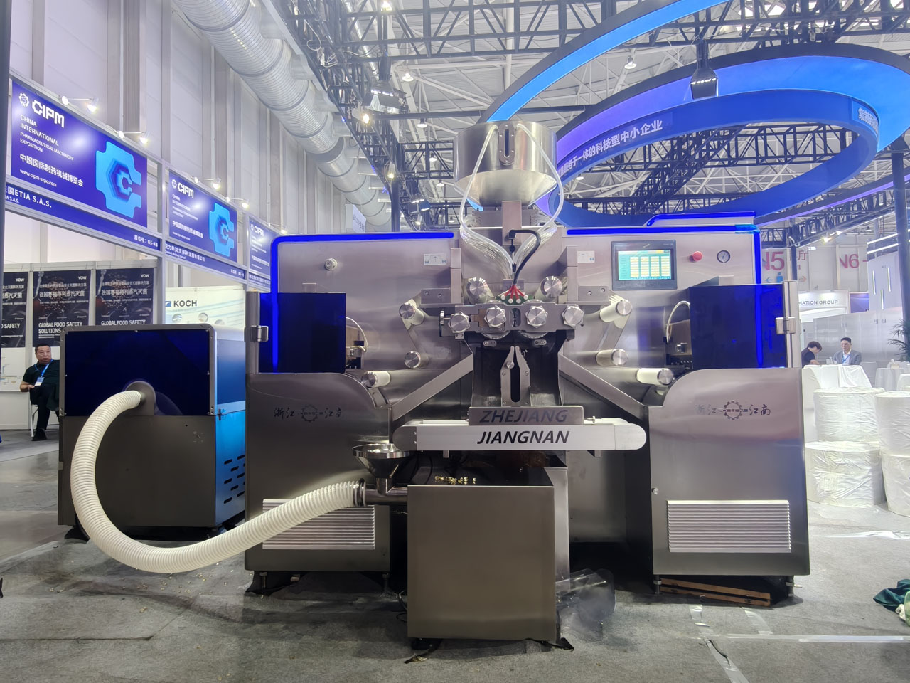 作为本次参展的“明星产品”,该智能化软胶囊生产线是公司针对制药、保健品等行业需求自主研发的标杆之作,早在 2023 年便获评温州重点装备领域首台套产品。生产线采用第三代开发平台核心技术,模块化设计让结构更稳固,主轴传动平稳低噪音;搭载精准温控系统与全程自动驱动进模辊技术,确保胶膜成型精美,适配食品、制药等多行业大批量生产需求。获得众多药企采购负责人青睐,不少客户当场达成合作意向。